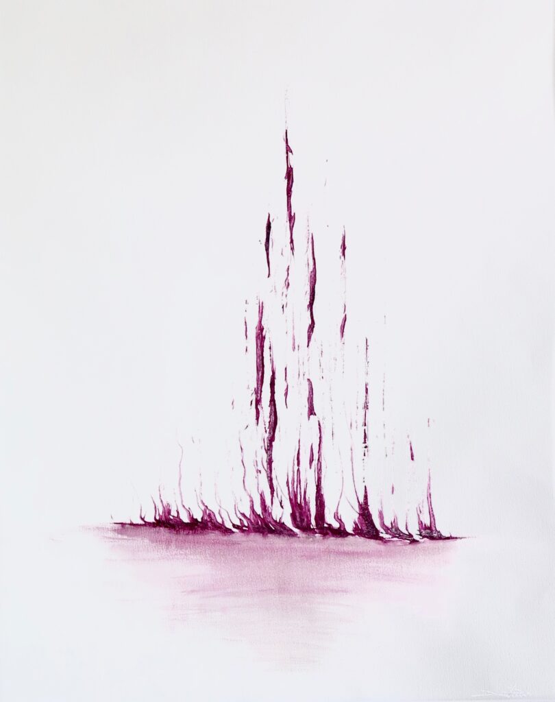 Resonancia roja, encre gras sur papier de riz, 34 x 37 cm